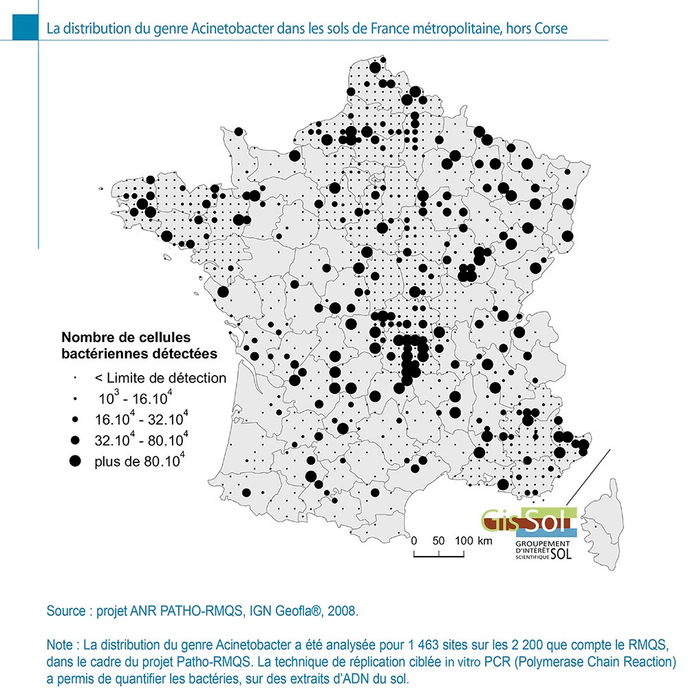 GIS Sol, 2011. La distribution du genre Acinetobacter dans les sols de France métropolitaine, hors Corse. Groupement d’intérêt scientifique sur les sols, 188 p.